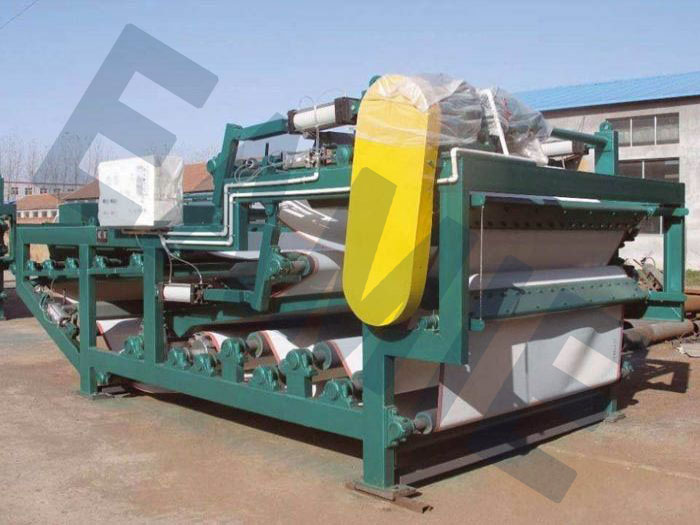 Belt Type Press Filtering Machine is also a kind of liquid and solid separation device. Sewage water with mud will be poured into this machine, and most water is filtered by gravity. While machine functioning, mud will be transferred into the space between two filtering belt. Rollers will press the mud and remained water will be drained out. Two filtering belts will separate with each other at the discharging roller; mud will be wiped down with the help of the wiping blade. Filtering belts will be flushed again before usage.